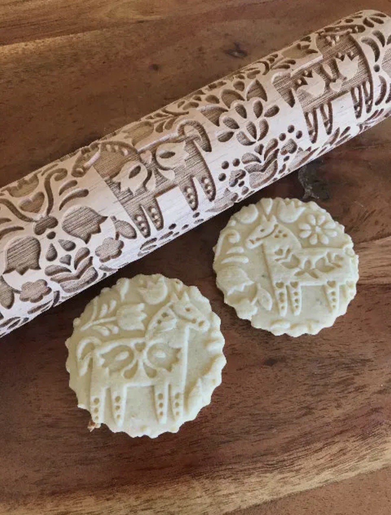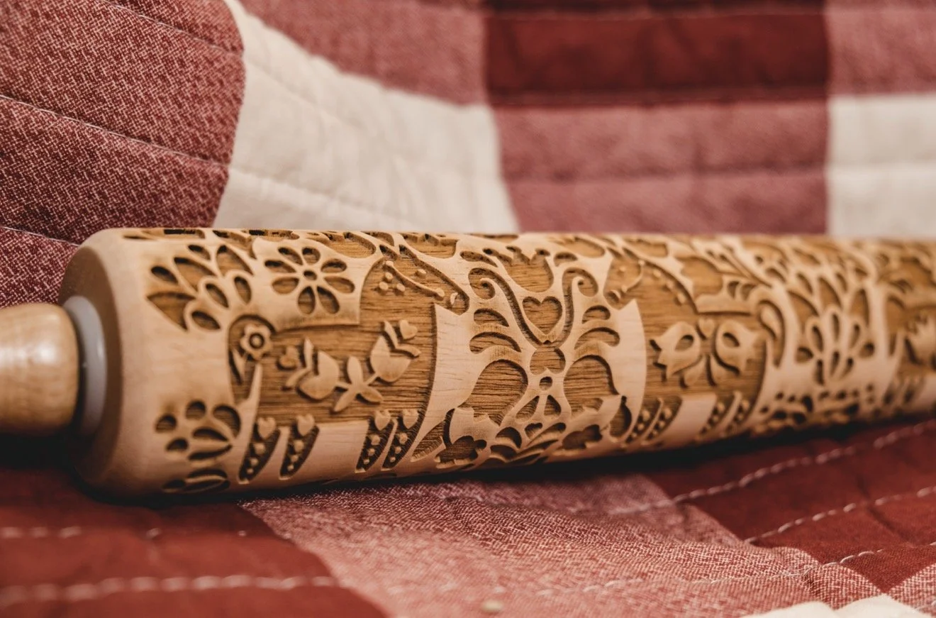 Transform your baking and crafting with the Deer and Trees Embossed Rolling Pin - a blend of timeless Scandinavian design and modern functionality. This stunning kitchen tool features an intricate woodland pattern that effortlessly imprints a touch of elegance onto cookies, fondant, pottery, and more.